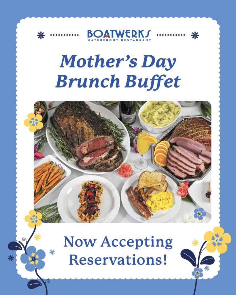 Celebrate Mom at our annual Mother’s Day Brunch Buffet on Sunday, May 10, from 10 am–4 pm at Boatwerks! Enjoy a delightful spread of breakfast favorites, freshly prepared omelets, sliced ham, carved beef, and a variety of appetizers, salads, sides, desserts, and more! Prices: Adults: $39 Children 5–12: $16 Kids 4 & Under: Free (with…